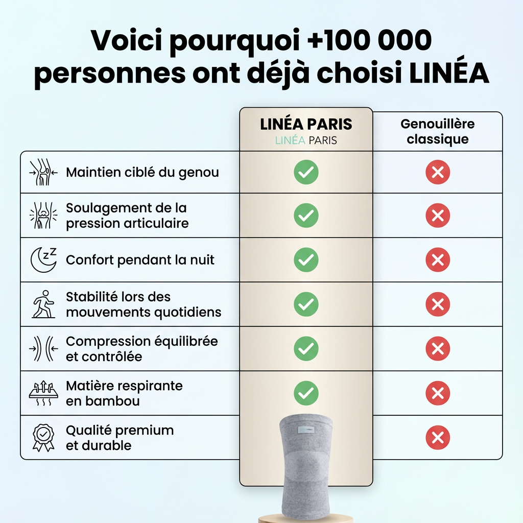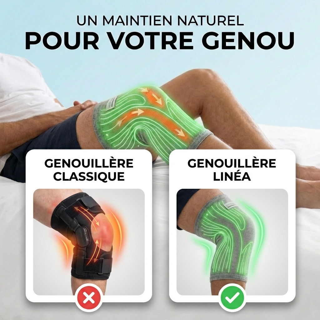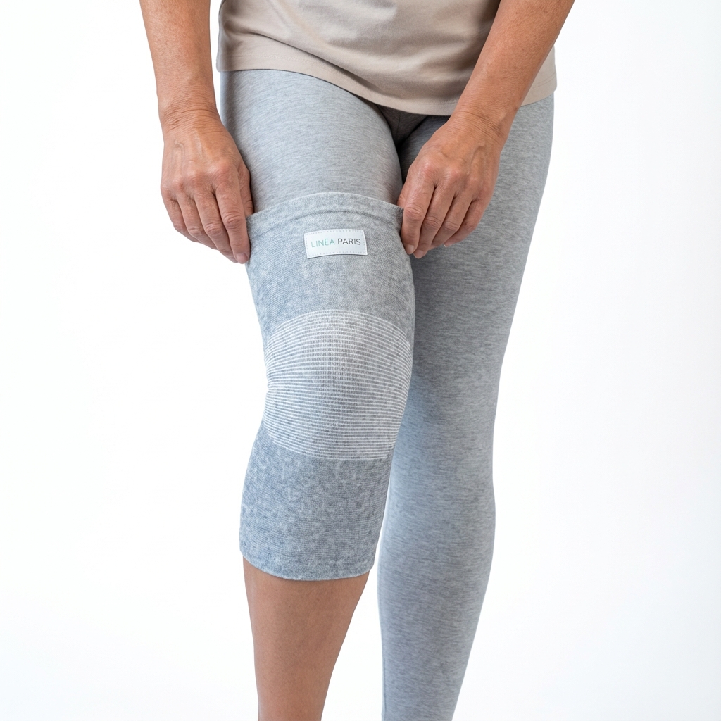 Comment Linéa aide : Sa compression ergonomique réduit la pression sur l’articulation, stabilise le genou et améliore la circulation, offrant un soulagement rapide et durable.
